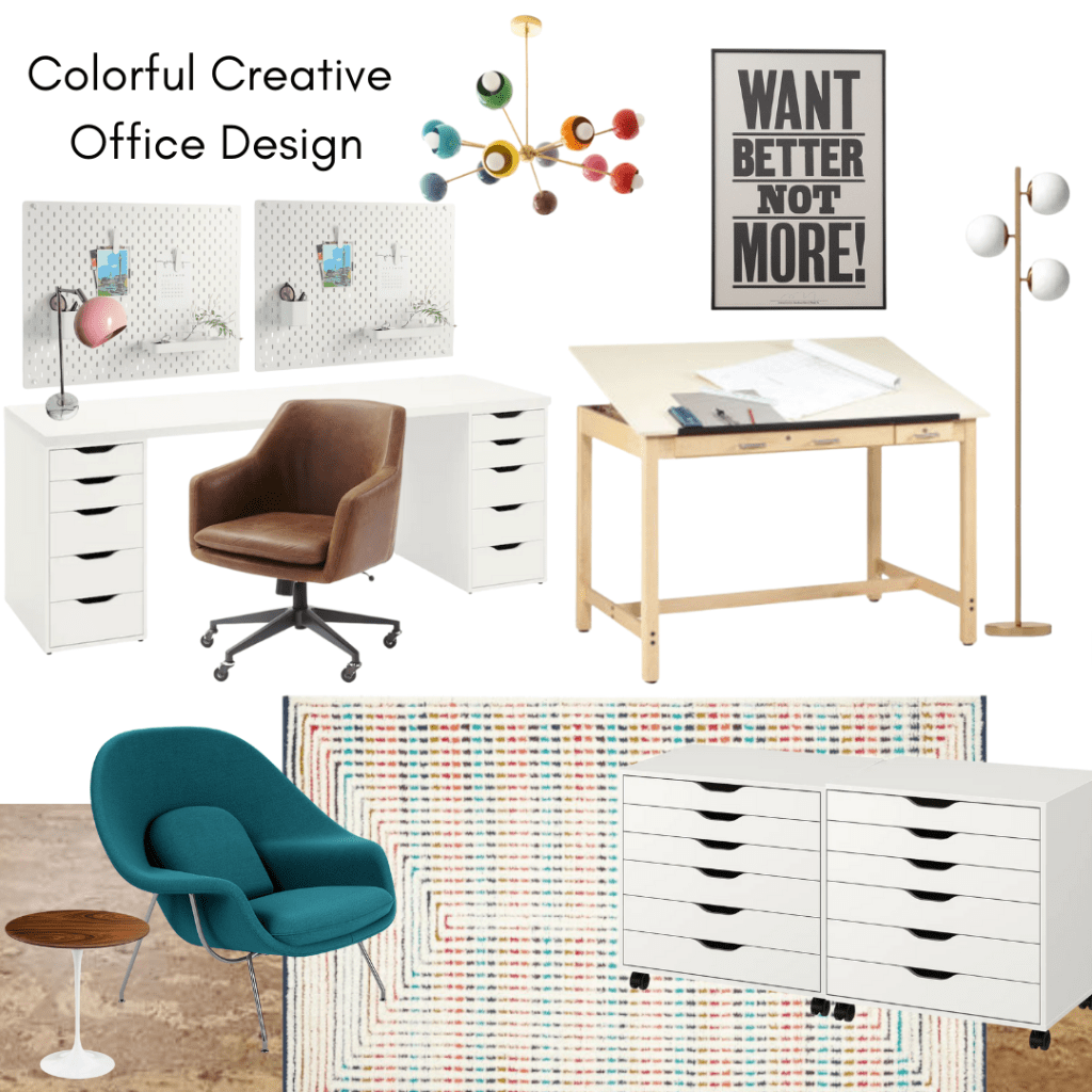 I pulled together some of my favorite things for today’s room design: The Womb Chair, Sazerac Stitches Light Fixtures, and the IKEA Alex storage system. It’s got a little bit of high/low going on, and I love it.