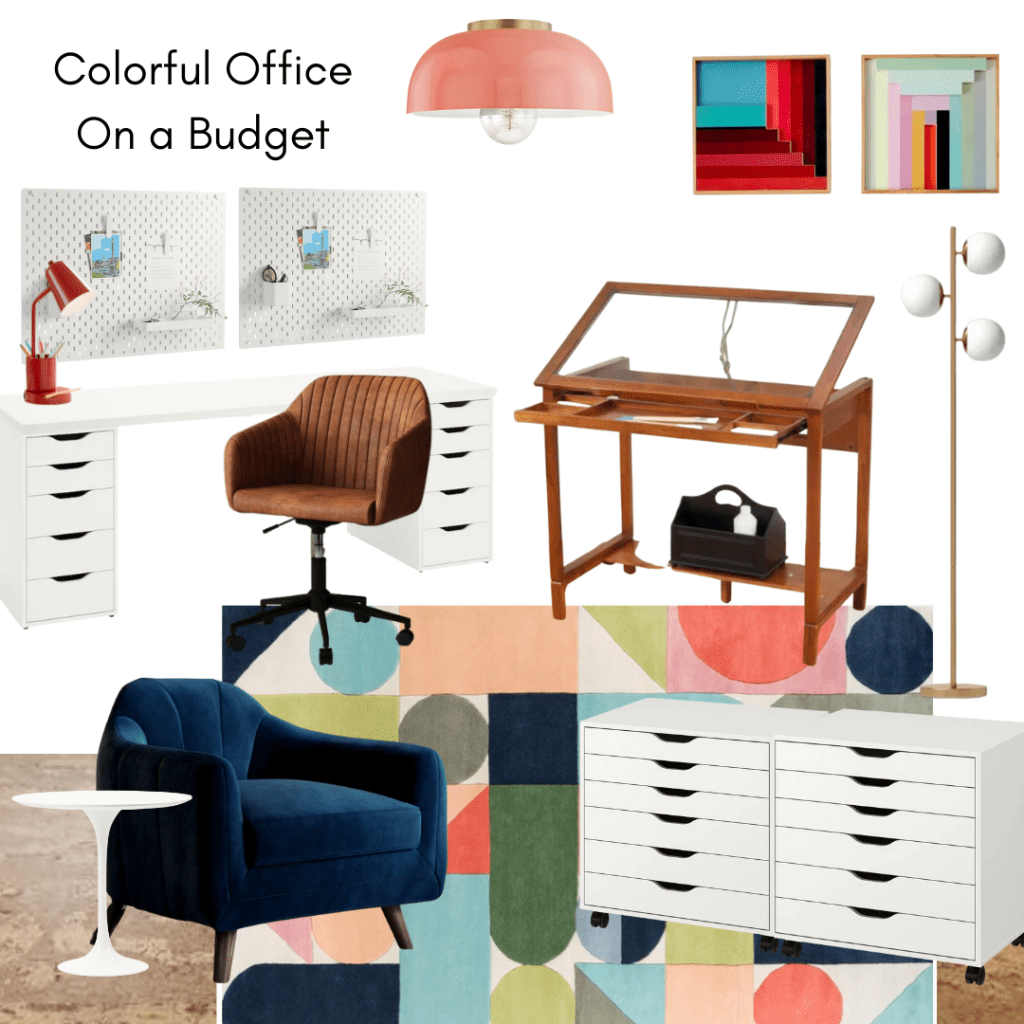 I was not totally satisfied with my first attempt at this colorful office idea, so I went after it again today. I love an authentic Womb Chair, but a $5,000+ designer chair in a largely Ikea office felt a little silly to me. So I decided to lean into the flatpack of it all and re-select some pieces on a slimmer budget. I started off with a Womb Replica from Modern Classics. I love the orange, but I am not sure how I feel about replicas in general. Where do you stand on replicas vs. authentic designs? I definitely support buying authentic designs from living designers and artists, but I wonder how long that should continue. For as long as they live? For 20 years after their death? Forever? I would love to hear your thoughts.